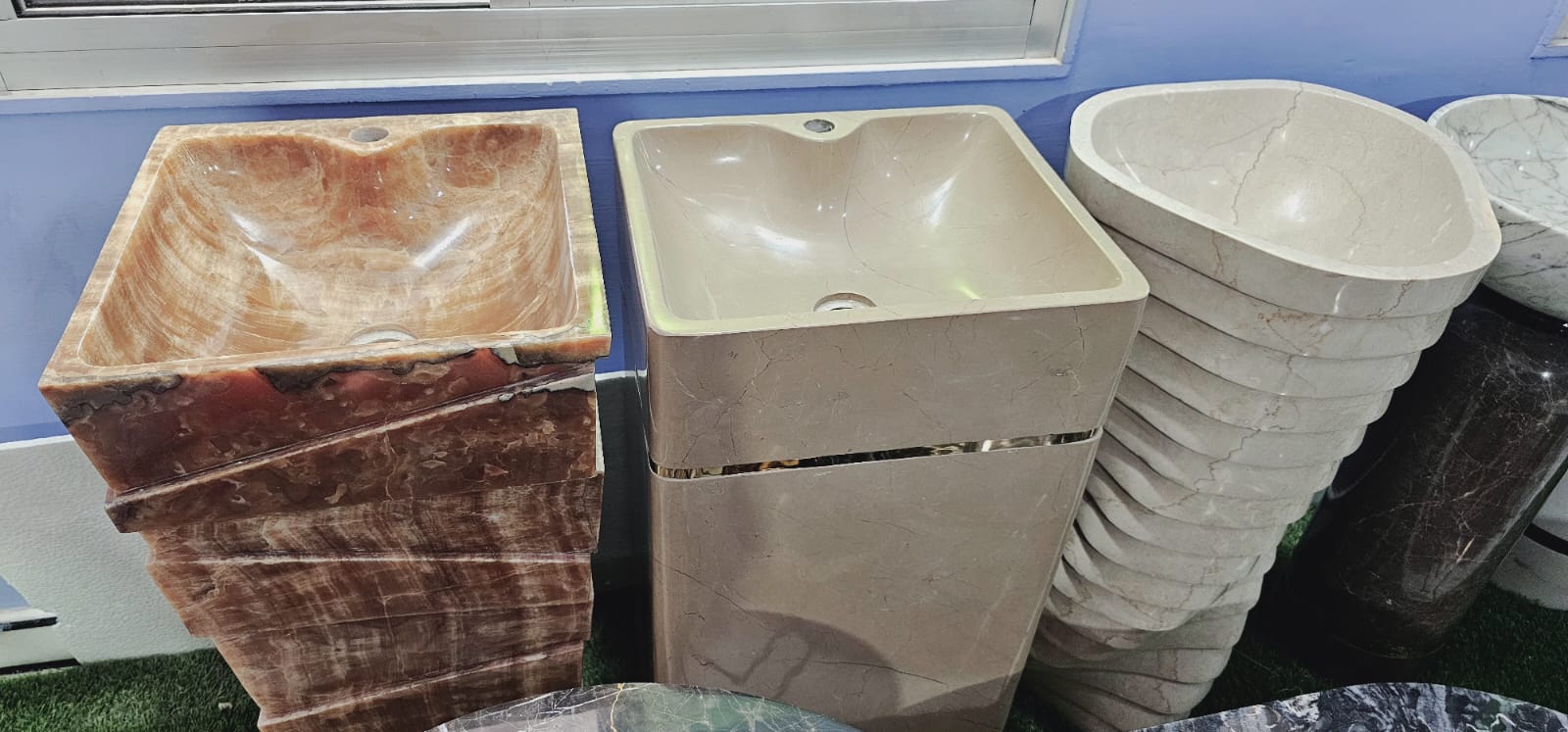 (Crema Marfil, Emperador), striking black (Nero Marquina), and bold green or blue varieties.